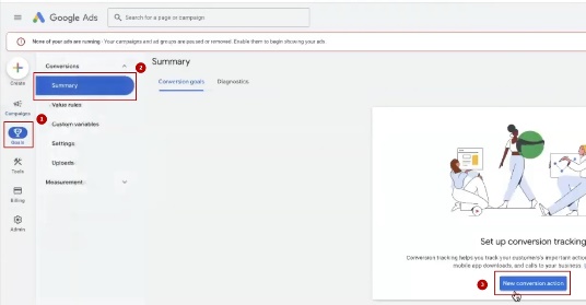 Ми вже з вами будемо зараз налаштовувати конверсію. Без цього перформанс взагалі не можна не включати, нічого з ним робити. Ідемо в наші налаштування цілей Summary. Обираємо «New conversion action».