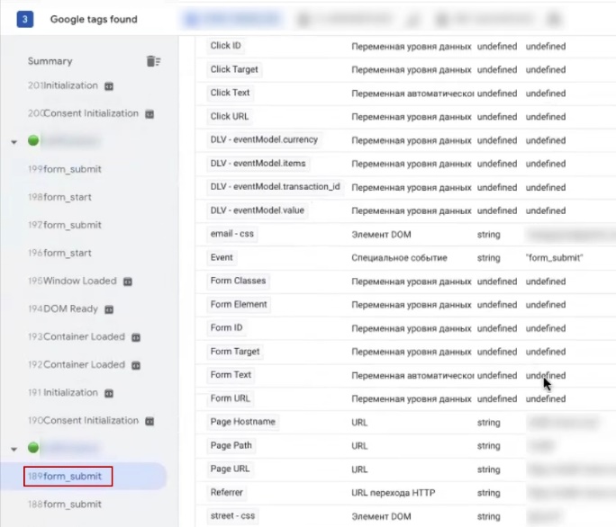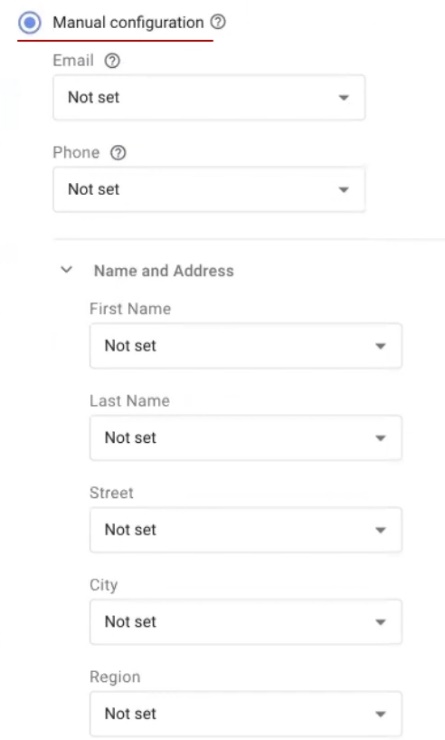 Як бачите, тут практично весь набір даних, який нам потрібен був. Єдине що Country не трекається. Але вам пропоную замість того, щоб без Country це не буде працювати. Пропоную вам залишити всього, як мінімум, один із варіантів – це спробувати лише залишити Email. Можна ще добавити номер телефона і цього буде достатньо. Тому що беру ці перемінні тим способом, який мені пропонує сам Google. Через ці перемінні їх не бачу.