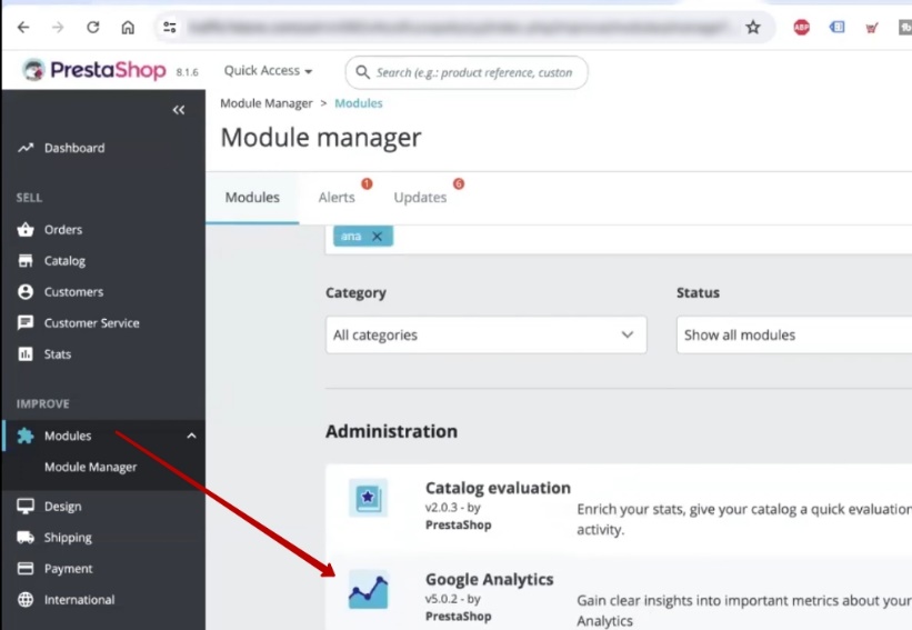 Після цього нам Google запропонує зараз встановити цей тег. Як він буде нам пропонувати? Я перезавантажила сторінку, щоб вона коректно відображалась. Що він нам пропонує? Як ми його будемо встановлювати? Для цього ми повертаємося в нашу платформу. Ідемо в «Модулі». Шукаємо нашу четверту аналітику. Вона у вас є. Вибиваємо analytics. Ось у нас є Google наша аналітика.