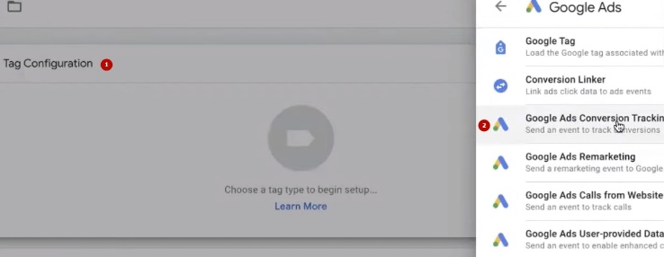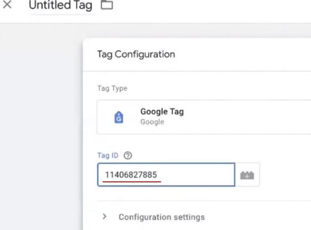 Знову повертаємося в Google Ads, копіюємо знову Conversion ID, якщо кудись наклацали, натискаємо “New” – “Tag configuration” – “Google Ads”.