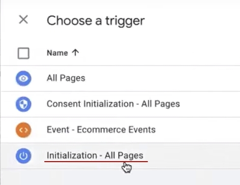 У тригерах вибираємо “Ініціалізація”. Тут виписуємо “AW-id”. Зберігаємо.