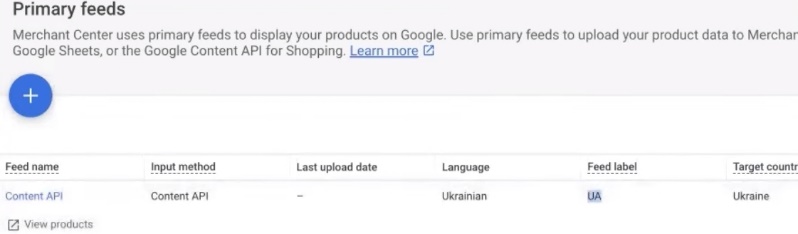 Потрібен ID мерчанта. ID мерчанта можна знайти в Мерчанті. Вставляємо сюди Feed Country. Feed Country зазвичай також тут написано. Йдемо у фіди і тут є Target countries – UA, Feed label – UA. Або якщо сумніваєтеся, чи правильно підбираєте, можете перейти на це посилання і вибрати свою країну.