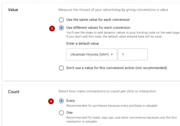 Налаштування конверсії “Тег покупка”. Встановлення зв’язку з Google Ads